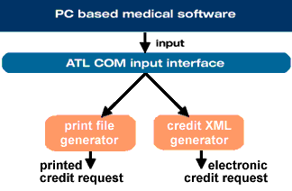 The input will be supplied through a programmatic interface. Thereafter the data is transformed into a standards-compliant XML credit request stream that is sent to the intermediate. Alternatively, one can force the module to send the input to a print engine producing the appropriate credit request on paper. As a side effect of the encapsulation the developers of the main software do not need to care, format nor implement the XML credit standard.